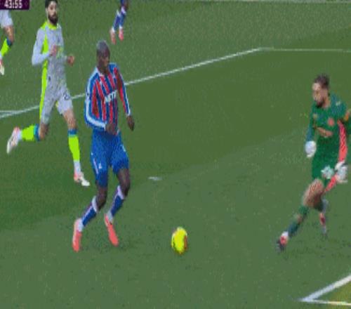 第34分钟,沃顿直塞,萨尔单刀小角度打门偏出。